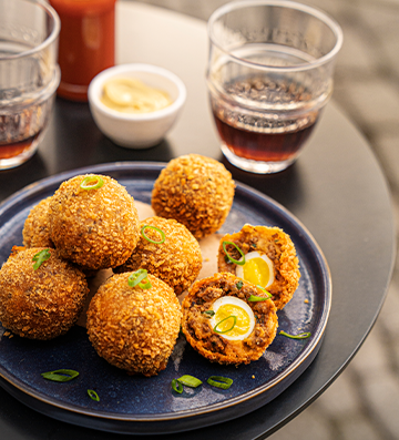 Dica: Para manter a gema ainda mole dos ovos utilize a seguinte técnica: coloque os ovos na água após sua fervura, conte 7 minutos para ovos de galinha e 2 minutos e 30 segundos para os de codorna. Após este tempo, mergulhe-os em água com bastante gelo e 1 colher (sopa) de vinagre, espere esfriar completamente antes de descascar.